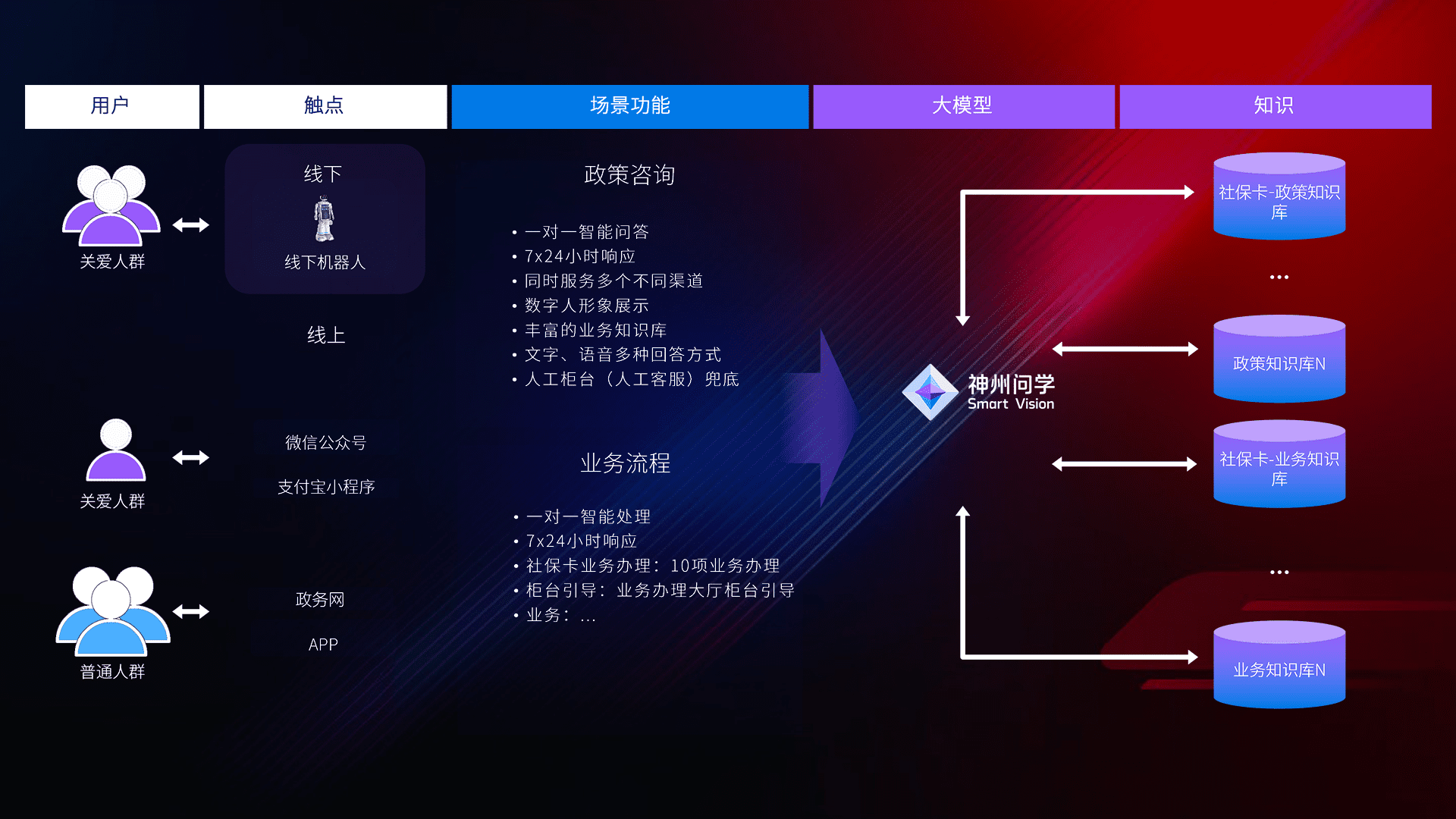 • 线上线下全覆盖:线上提供微信公众号、、、、支付宝小程序、、、政务网、、、、app多种渠道,,,,与线下机器人形成完整服务体系。。